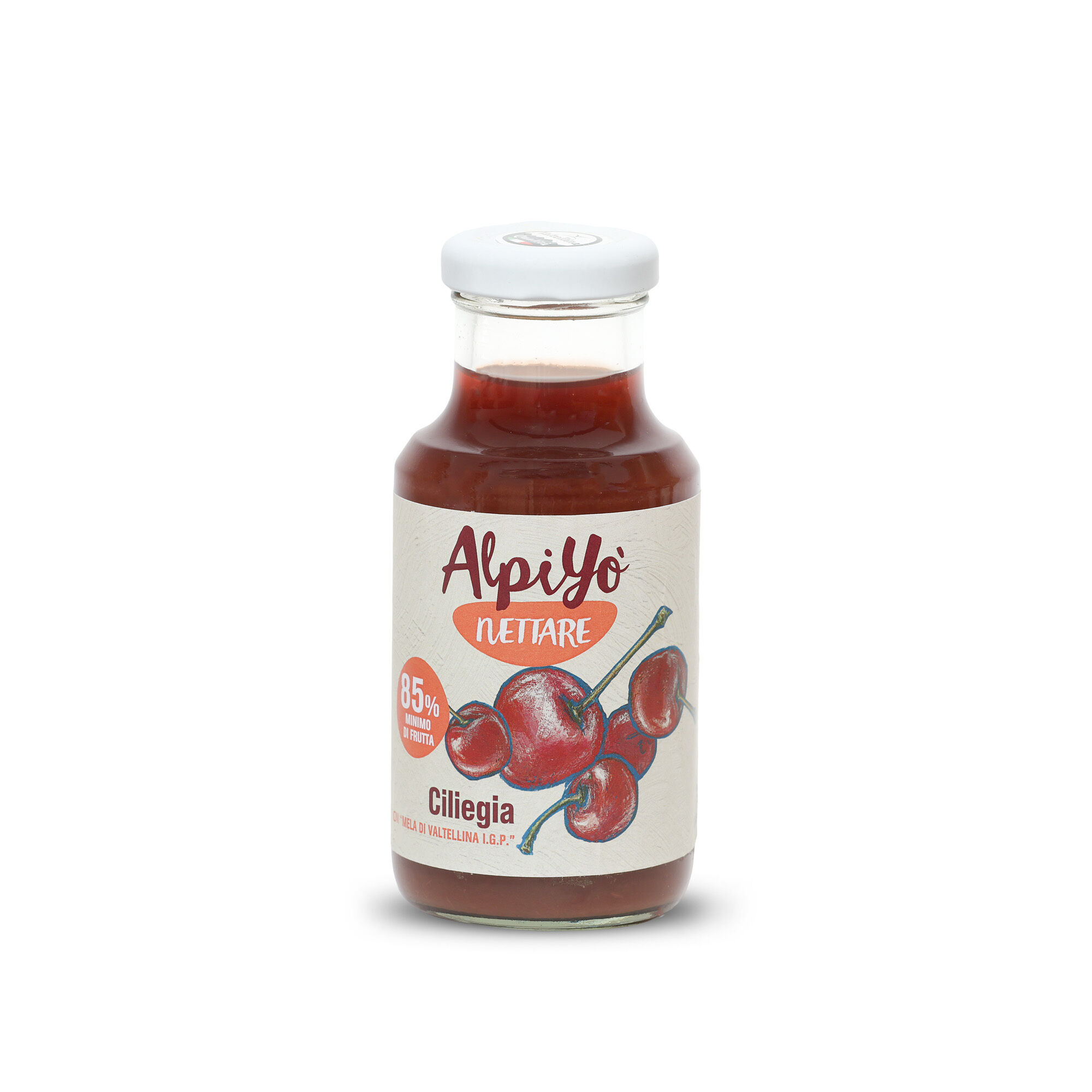 Un nettare che profuma d'estate, con il sapore della ciliegia senza conservanti né coloranti. I nettari AlpiYò sono la quintessenza della purezza e del gusto e sono prodotti con frutta coltivata prevalentemente in Valtellina rispettando l’ambiente e favorendo la crescita e sviluppo di una filiera corta locale virtuosa e sana. Una filiera che coinvolge i nostri partner di progetto: la Cooperativa Sociale “il Sentiero” e Melavì, storico produttore di mele della Valtellina.